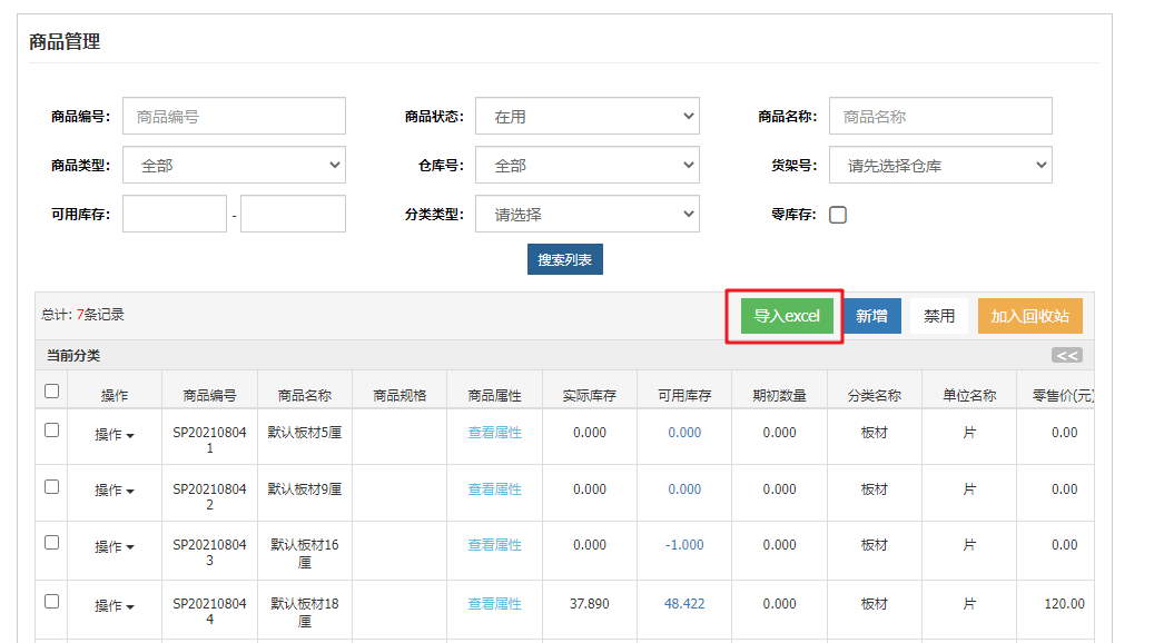 1.商品管理增加Excel导入商品