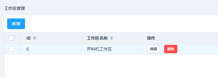 点击生产配置管理->工作区管理,进入工作区管理界面