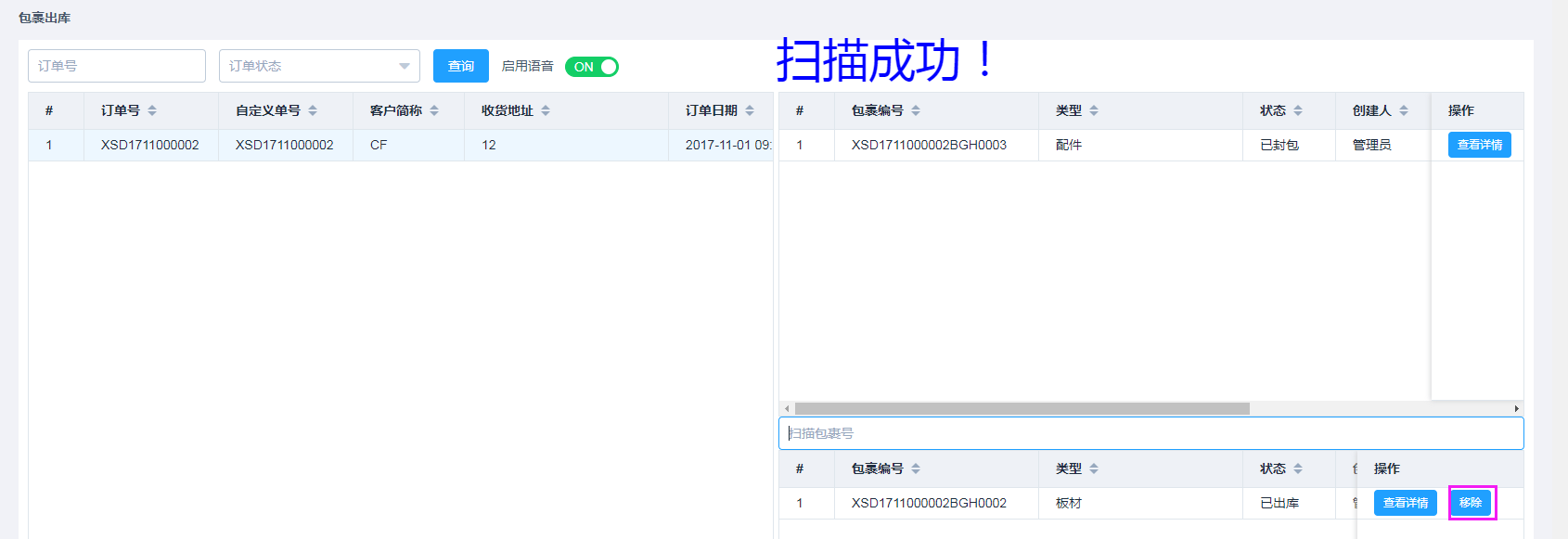 若开启语音,扫描包裹出货的时候,会有语音提示;