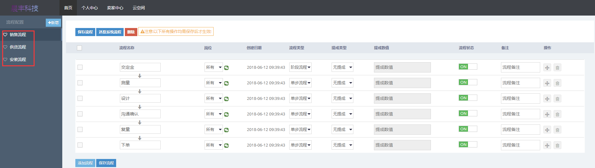 点击卖家中心-erp中心-流程配置,进入流程配置页面