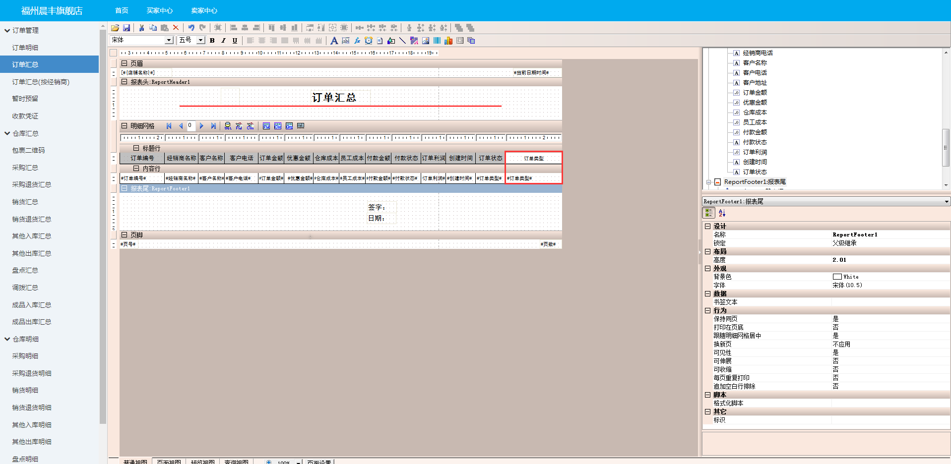 在打印配置页面,点击报表名称进入报表设计页面