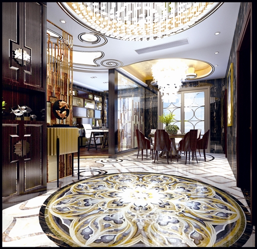 整体装修造型:本案为东南亚风格高层住宅,位于城中万达华城。作为一套5房的大户型没有入户门厅,厨房以及餐厅较小,大露台如何使用,这些都是原户型需要解决的问题,东南亚风格的主要特点是以自然为主,以一种最接近大自然的方式来展现其特点,大多数以木材、竹藤为原材料。本案设计方案效果以“花开富贵,吉祥如意”为主题展开的设计理念搭配,使其整个空间有既豪华又别具一格的韵味。