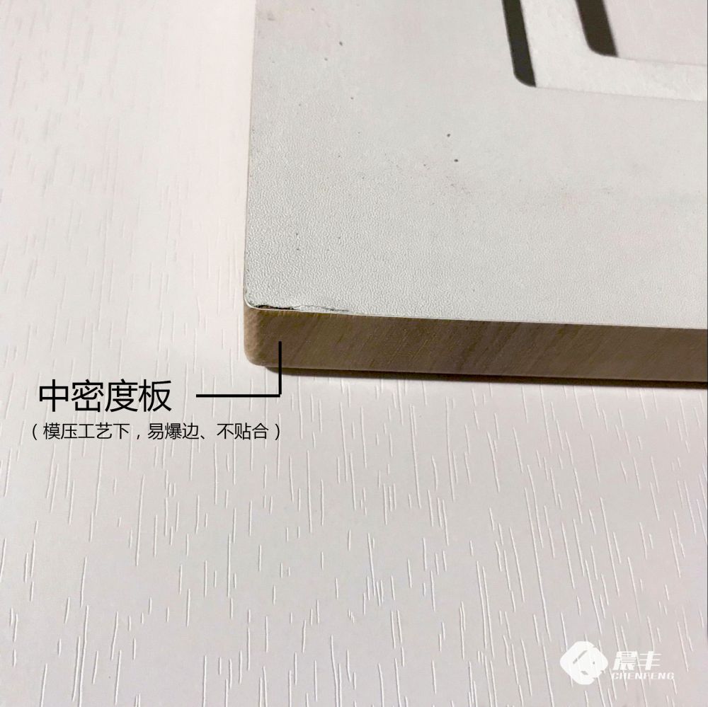 中密度板制作成吸塑/烤漆面板,因表层较粗糙或遇工厂生产设备不好,无法提供好的工艺,其面板表层就会产生气泡/空隙,此点在造型工艺上较为明显。