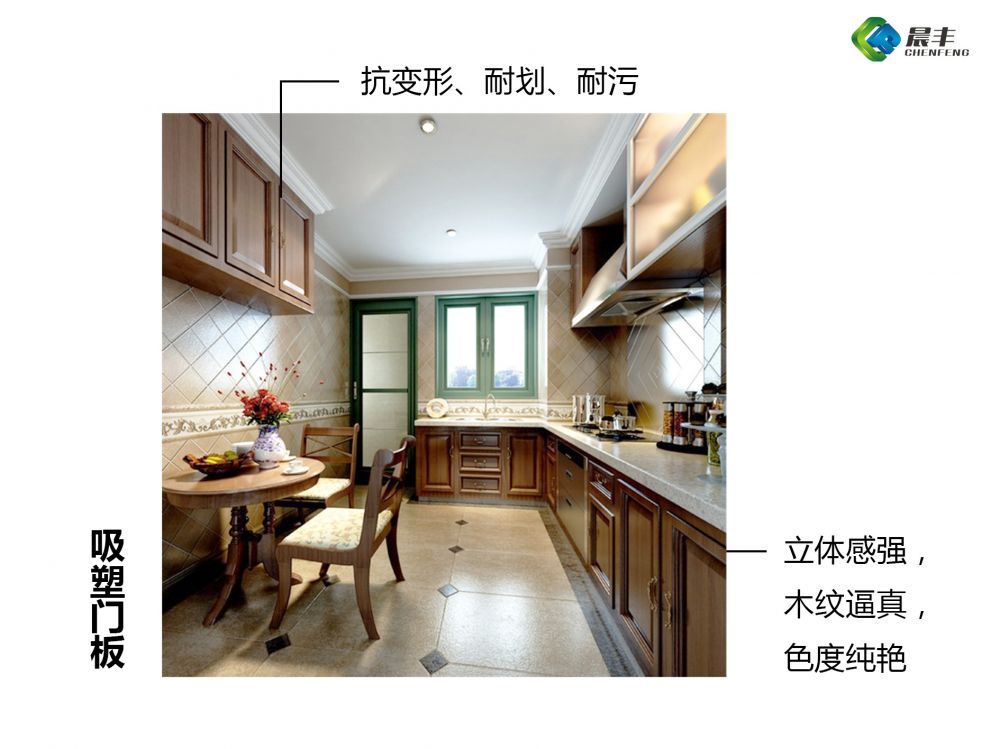市面上,很多人在选择橱柜门板时会考虑选择吸塑门板。而吸塑门板也没有让广大消费者失望,除了立体感强,木纹逼真,色度纯艳等特点外,还有抗变形、耐划、耐污的特性。