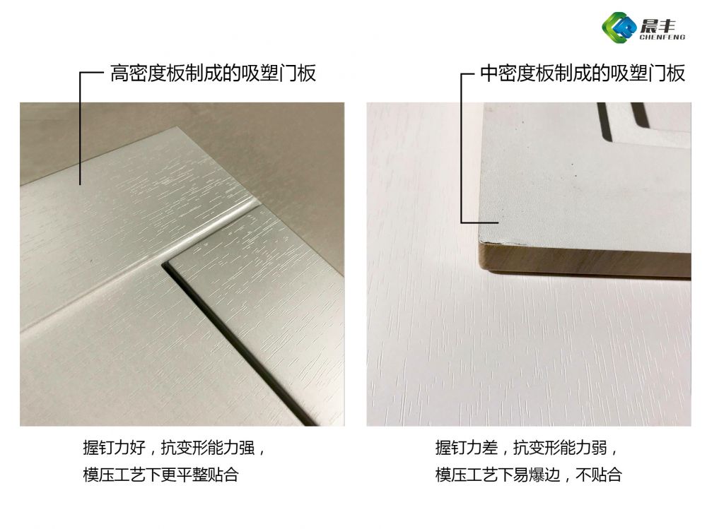 而且,高密度板制成的吸塑门板更贴合、平整,表面不易产生气泡和空隙。