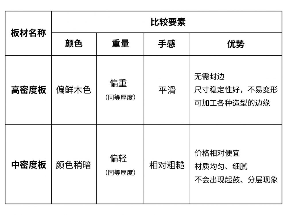其实,有过良好体验的消费者,大部分使用的密度板都是高密度板与中密度板,因为市面上目前几乎没有出售低密度板的商家与厂家,所以,此处仅就高密度板和中密度板进行解说。