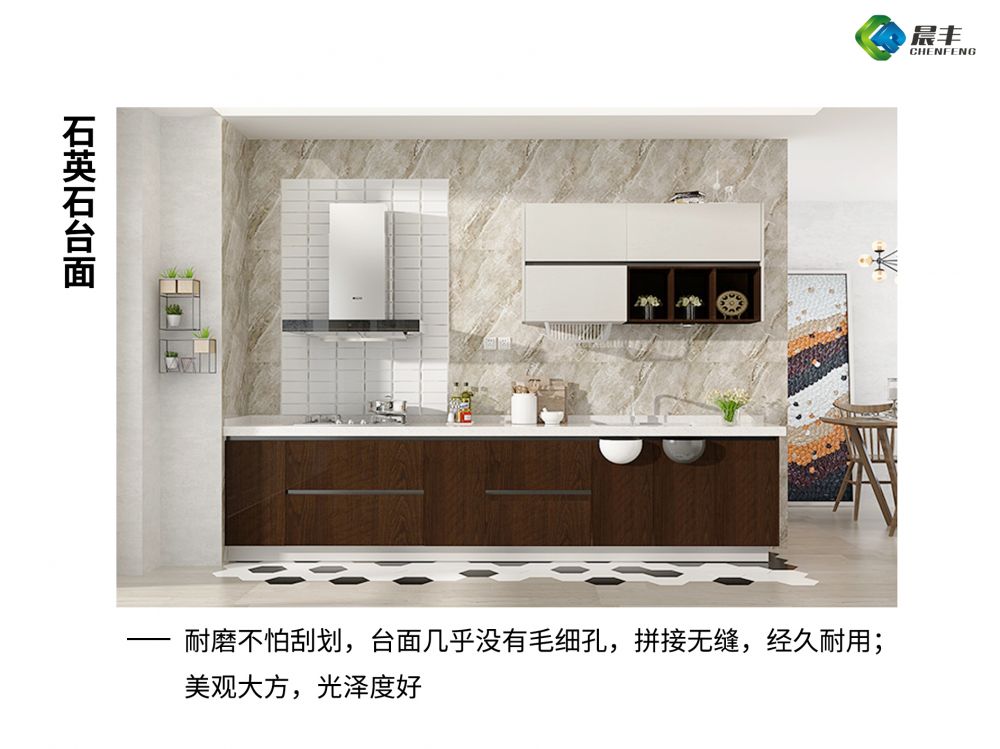 石英石的优点是耐磨不怕刮划,台面几乎没有毛细孔,拼接无缝,经久耐用。视觉上美观大方,光泽度好。相比天然石材,更耐腐蚀、耐油污,可谓百毒不侵。使用寿命可长达数十年,日常只需要用清水擦拭即可。
