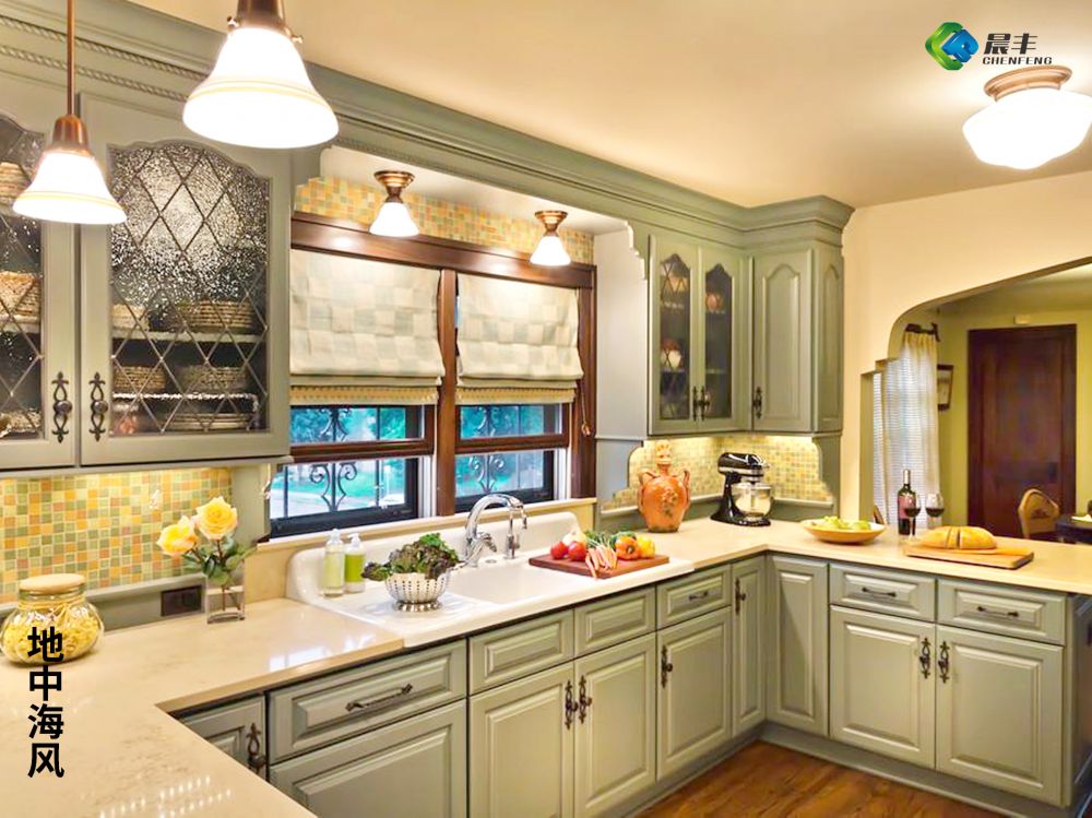 地中海风与巴洛克风存在异曲同工之妙,都注重自然奔放的艺术表达,地中海风色彩多样明亮,色彩组合纯美自然,在色彩上独具多样优势的吸塑门板,适合衬托该风格。