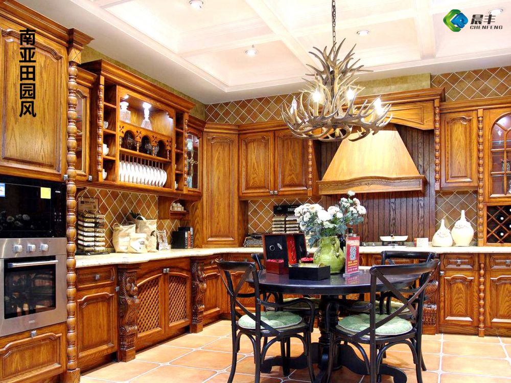 粗犷,以咖啡色为主色调的南亚田园风格,做旧工艺多,喜雕花装饰。吸塑门板在图案雕刻与色彩上,无疑能够很好地呼应。