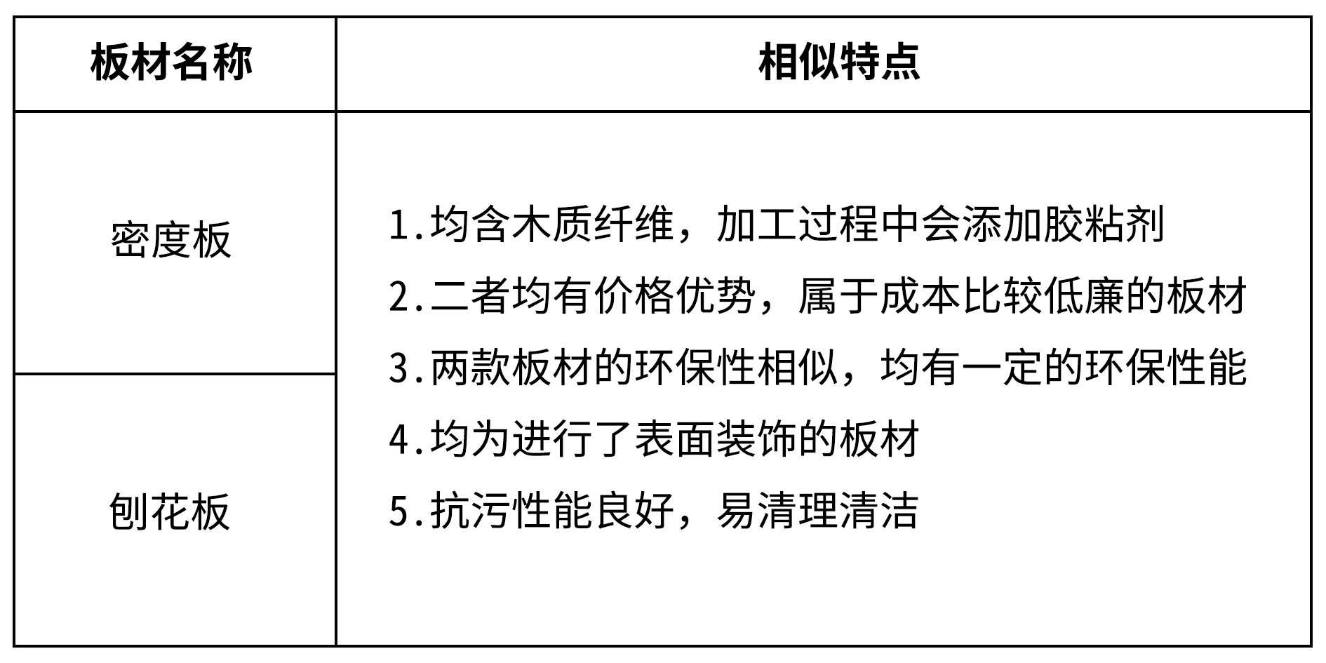 密度板与刨花板有着不少相似之处,共有的优势也是让消费者踌躇选择哪款板材的主要原因。但是,既为两款不同的板材,必然存在着不同之处,接下来为大家解析一下它们的不同点: