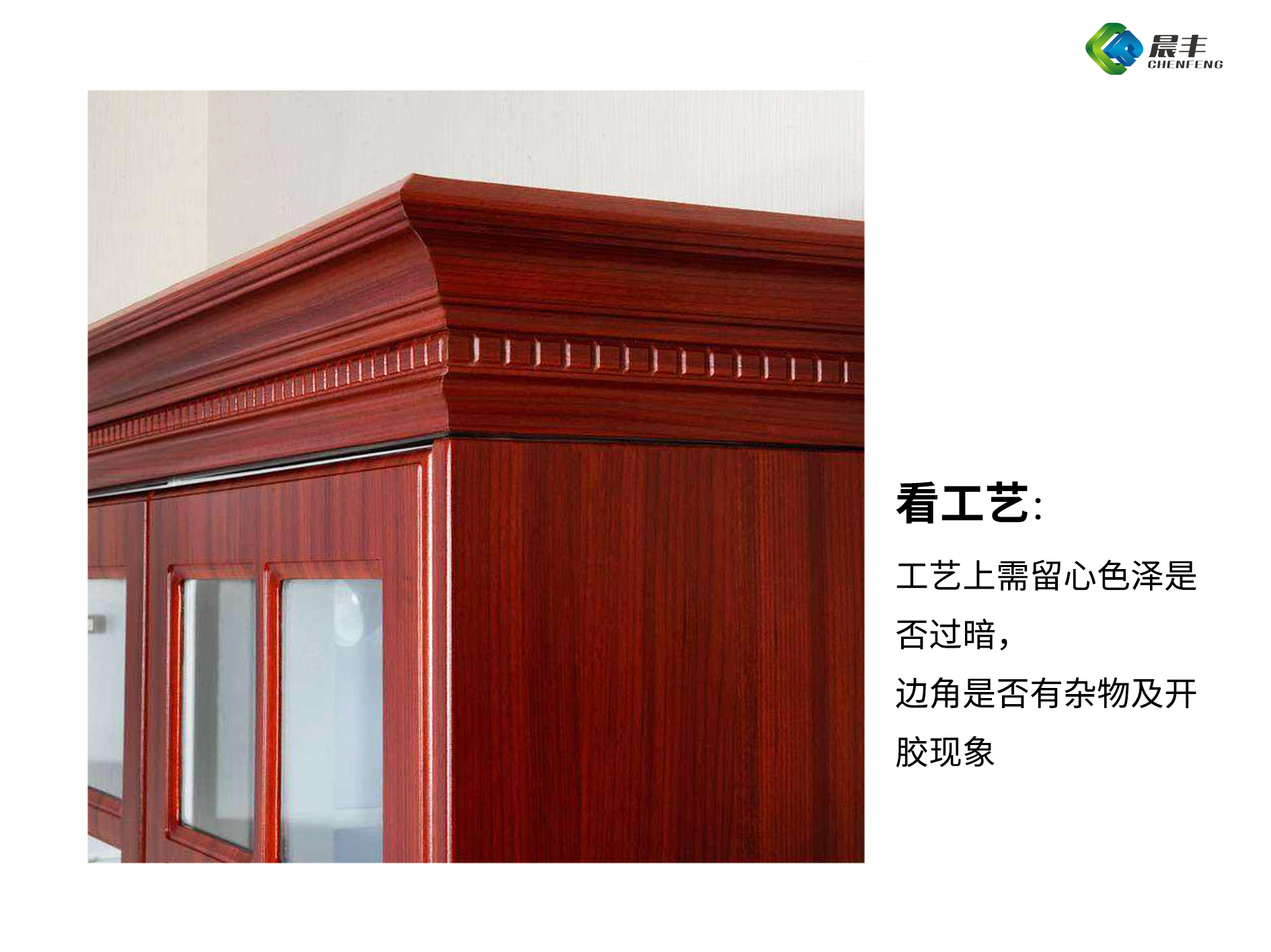 (3)工艺上需留心色泽是否过暗,边角是否有杂物及开胶现象。