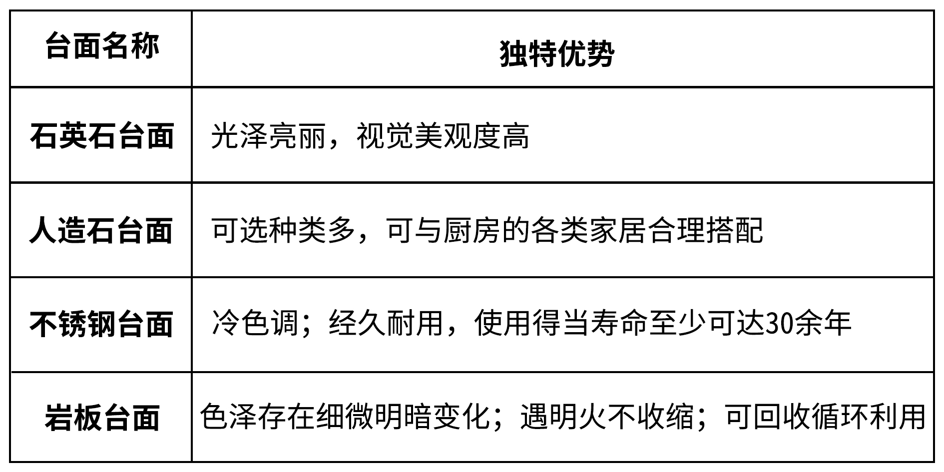 一、四大流行橱柜台面的独特优势