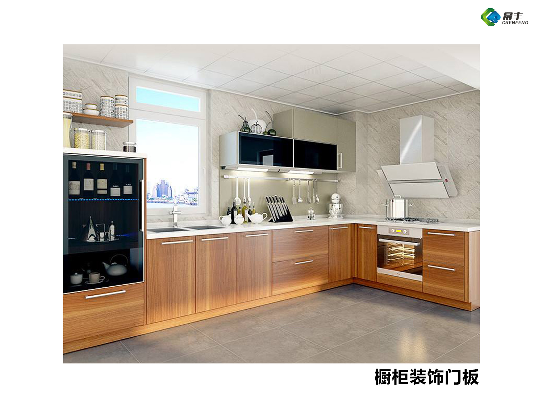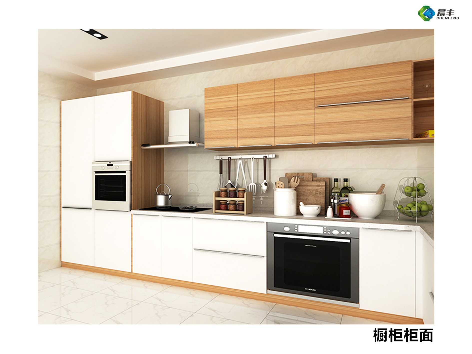 (2)基材:橱柜双饰面板的基材一般是刨花板或中密度纤维版。